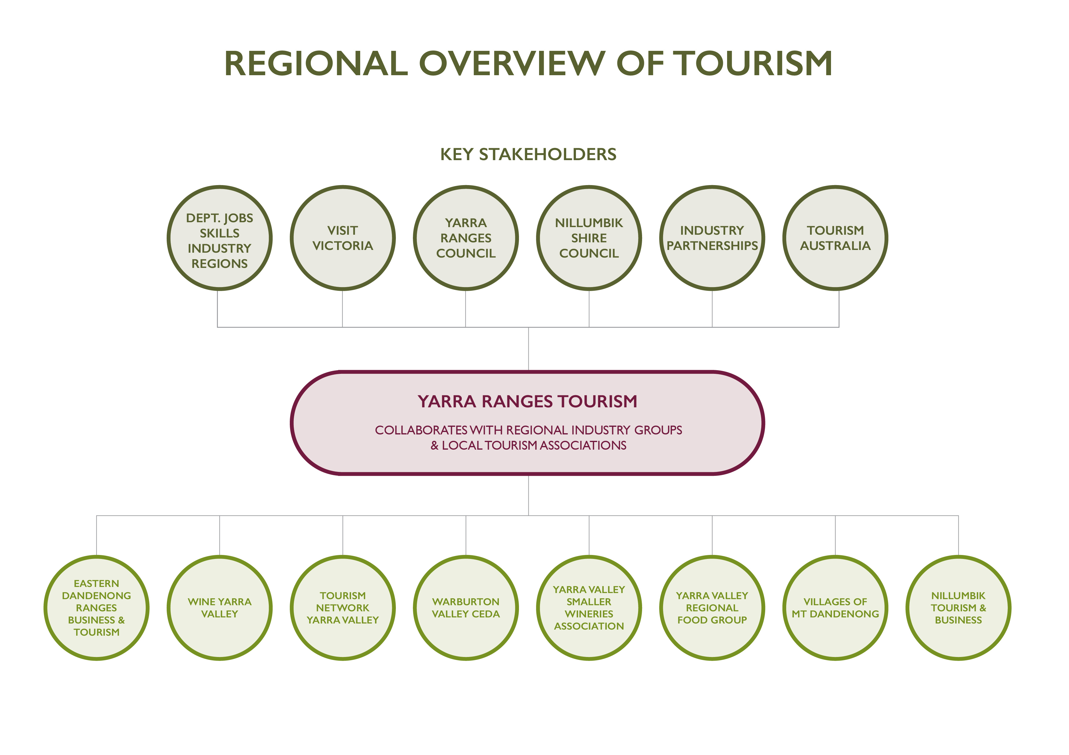 Local Tourism Associations (LTAs) and Industry bodies work in partnership with the regional tourism body (Tourism East), for their local industry to improve the tourism experience for visitors. The following are the Local Tourism Associations and Industry bodies in the Yarra Valley & Dandenong Ranges region. Please click on each one to learn more about each association's mission, goals and membership enquiries.