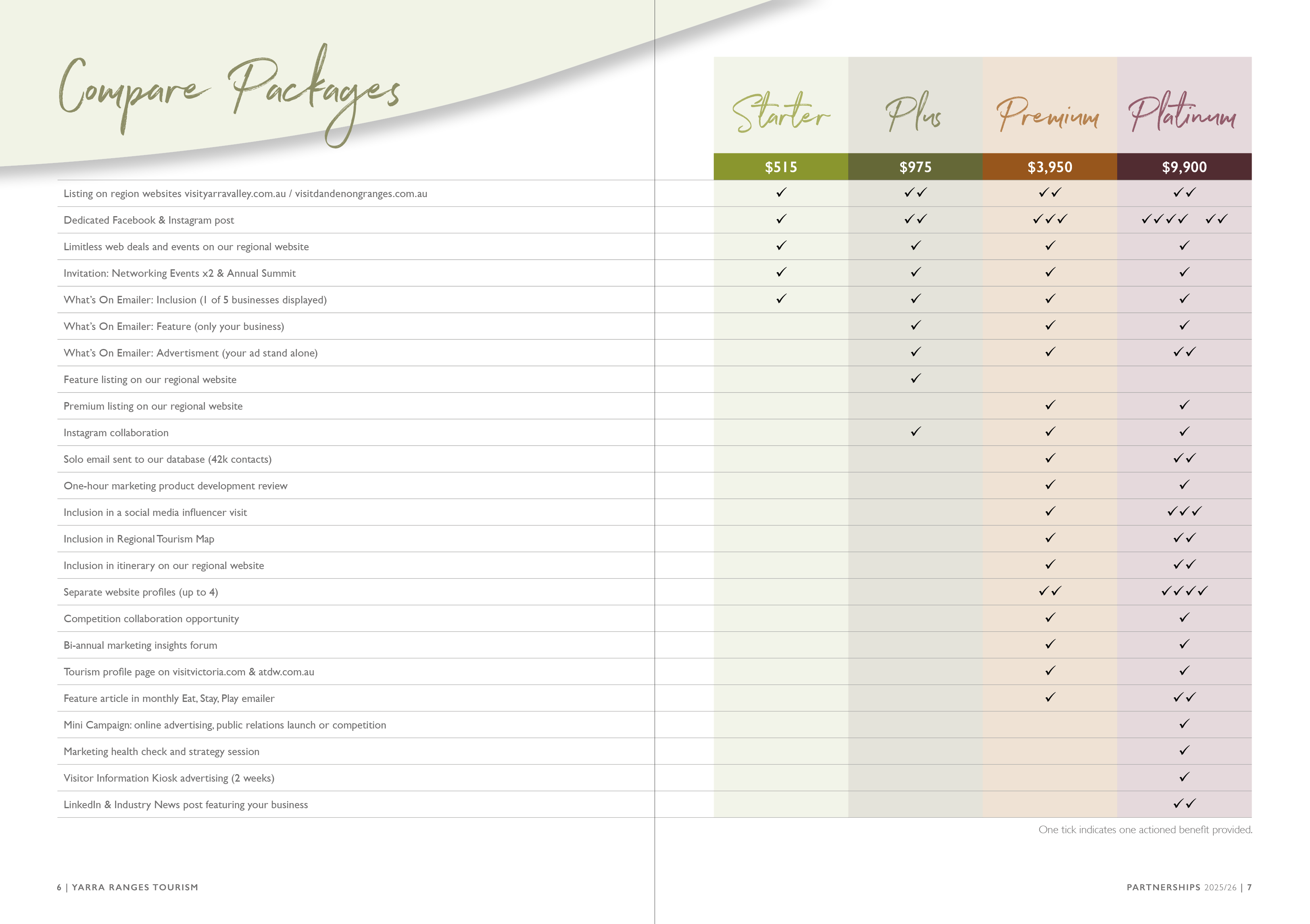 If you have any questions or are unsure which package is best suited to you, please email partner@tourismeast.com.au